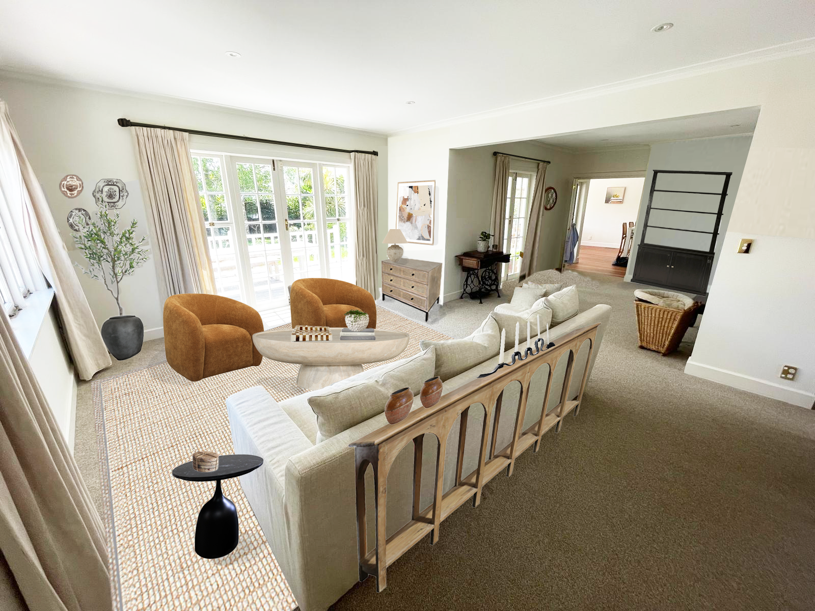 Another unique part of my process is giving you a visual of your room redesigned from a photo (you can see here two ‘before and after’ examples). This isn’t a render, but rather you room made-over in a photo. I am able to add in different coloured walls, new furniture and décor and even remove elements that we no longer want. I have found this to be invaluable when clients are trying to make decisions about which colours to use or items to buy, as they can see the vision I am trying to show them at a fraction of the price of a full render.